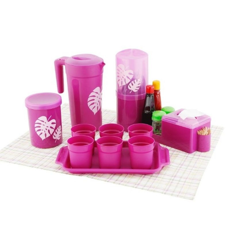READY STOK PRODUK KAMI ORIGINALNote: Hati-hati Barang Tiruan dengan Harga MurahMOHON DIBACA SAMPAI HABIS. TIDAK MENERIMA KOMPLAIN UKURAN DAN BAHAN PRODUK. SEMUA SUDAH DIJELASKAN DI DESCRIPTION BOX, ya HARGA SUDAH TERMASUK BUBBLE WRAP(SILAHKAN TAMBAH BUBBLE BILA DIRASA KURANG)_______________________________________________1 SET TEKO DONO PITCHER ISI 8 (TEKO, GELAS, NAMPAN) MERK : TECHNOPLASTKenapa jadi jagoan??- 1 set Dono Pitcher set sudah LENGKAP isinya - Ada pitcher uk. 2.2 L, 6 gelas dan nampan.. Kumplittt dan Praktis.- Harganya SUPER terjangkau, dijamin gak bikin kantong bolong Apa saja yang Anda dapatkan dalam 1 set :1 Pitcher uk. 2.2 L , bisa buat minum seluruh keluarga6 gelas uk. 245 ml, banyak dan ideal untuk disajikan waktu kumpul21 nampan yang pas buat 6 gelas. PRAKTIS!!Keunggulan produk :- Desain simple dengan warna hijau tosca yang FRESH- Penutup pitcher yang memudahkan saat buka tutup- Pegangan di sisi pitcher- Material plastik PP5 dan Food Grade, sehingga aman untuk minuman. Buat Kopi atau minuman panas, TIDAK TAKUT BAU PLASTIK lagi... SAVE.- Freezer Safe, aman dimasukkan ke dalam freezer untuk mendinginkan minuman._______________________________________________1 SET GELAS PELANGI PLASTIK BISTRO ISI 6 (280 ML)MERK: BISTROUkuran : 7.5 CM x 10.5 CMHarga segini sudah dapat 6 pcs, warnanya campur karena dari pabriknya sudah di seal per 6 pcs :)Gelas plastik yang murah tapi bagus. Warna-warni, cocok untuk anak-anak, anak kos, di rumah atau di kantor.Isi : 280 ml (lebih besar dari gelas Aqua)1 SET DIANA PITCHER- 1 Pitcher uk. 2.2 L - 6 gelas uk. 245 ml- 1 nampan yang pas buat 6 gelas 1 SET CUTLERY HOLDER- menyatu dengan tempat tisu, tusuk gigi dan terdapat tempat khusus untuk taruh tempat bumbu uk. 35.5 x 10.5 x 12.5 cm- 1 pc Toples uk. 1,15 LiterKeunggulan produk :- Pitcher set yang komplit, dilengkapi cutlery set- Material plastik PP5 dan Food Grade- Aman untuk makanan dan minuman- Freezer safe- Dilengkapi penutup pitcher yang mudah dibuka-tutup- Pegangan di sisi pitcher, praktis saat menyajikan minuman- Cutlery Set untuk sendok-garpu, tempat tisu, tusuk gigi, dan bumbuPAKET HEMAT DIANA PITCHER + CUTLERY HOLDER (Dapat keduanya) SILAHKAN CHECKOUT 2 KALI UNTUK MENDAPATKAN GRATIS ONGKIR. #tekoplastik #pitcherplastik #waterjug #gelasplastik #nampan #mejamakan #tempatair #wadahairminum #bpafree #donopi