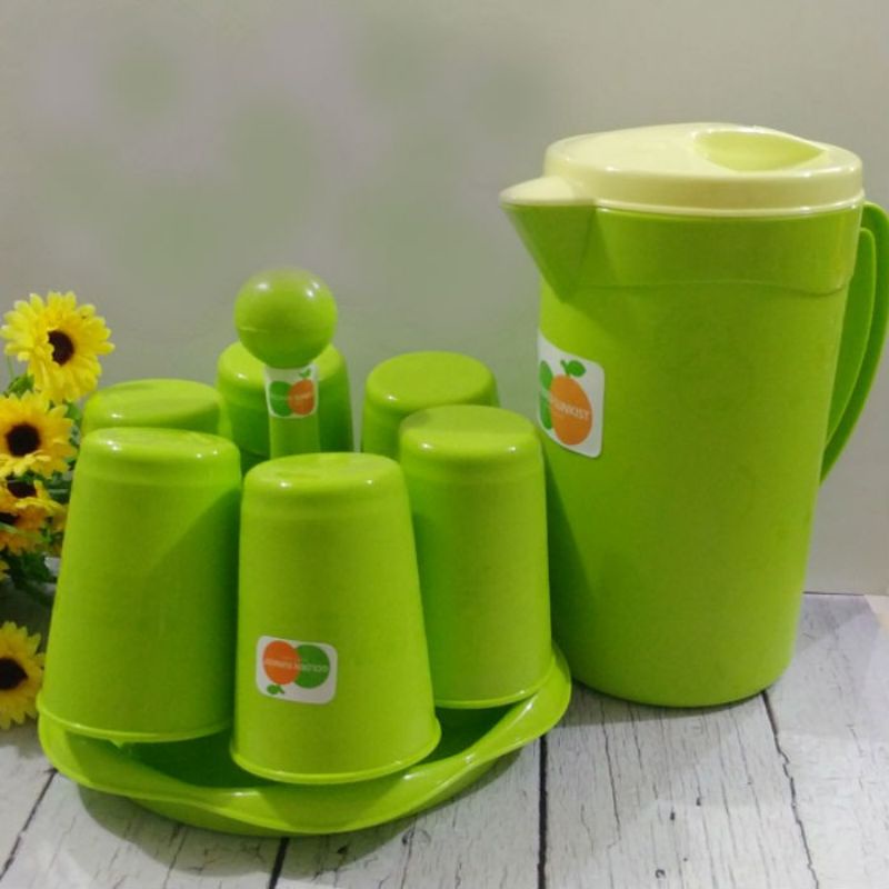 Suplier Perlengkapan di Kabupaten Cianjur 1 Set Gelas G5015 Dan Teko Plastik Golden Sunkist Kbk 3011 Dan Glass Stand 6 dari Fetridianandika Kota Surabaya