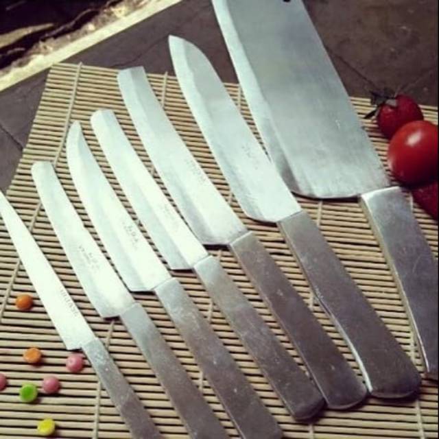 1set pisau dapur stainless, sangat cocok untuk melengkapi perabot dapur anda. Mewah dan berkualitas.Mata pisau dan pegangan dari bahan stainless yang anti karat.1 set berisi 6 pcs pisau dng kegunaan yang berbeda-beda, sbb ;a) 1 buah pisau mini ukuran kecil dg ujung runcing yg berfungsi menyayat ususmencincang...dllb) 2 buah pisau kecil dg ujung oval yg berfungsi utk mengupas aneka bawang dan bumbu dapurc) 3 buah pisau ukuran medium utk mencincang aneka sayur dan buahd) 1 buah pisau ukuran jumbo utk mencincang