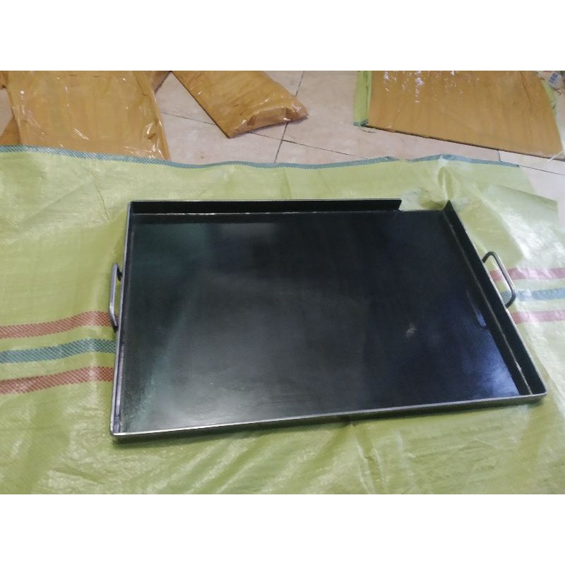 wajan datar bahan baja anti lengket tebal 5mili ukuran 40*30cm dengan pinggiran 4sisi tinggi 3cmccok untuk usaha roti bakar, kebab, sosis , burger, panggang daging dan roti" lain pengiriman h+1 sampai h+2 setelah pemba