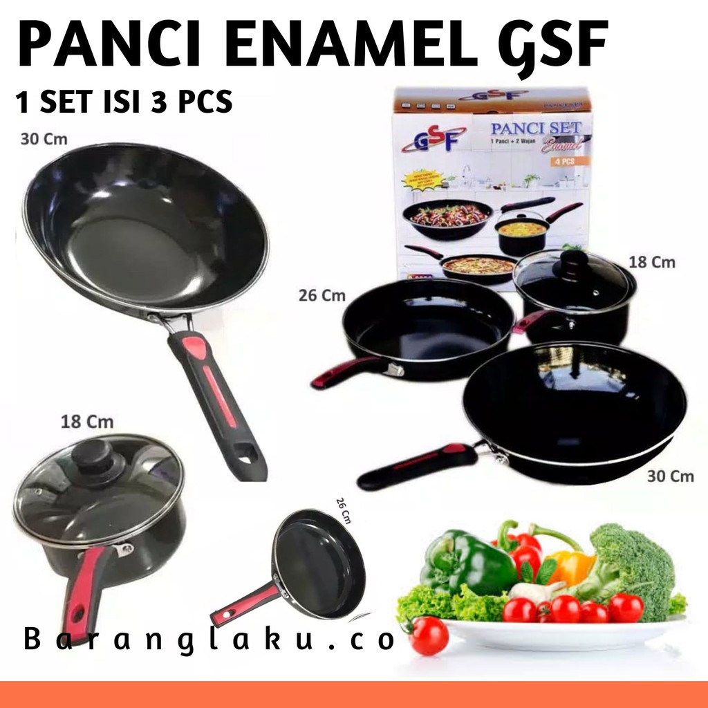 Agen Perlengkapan di Kabupaten Tegal Panci Set Wajan Set Penggorengan Enamel Anti Lengket 3 Pcs Gsf-2630 Iyn-120st dari Baranglaku.co Official Shop Kota Bekasi