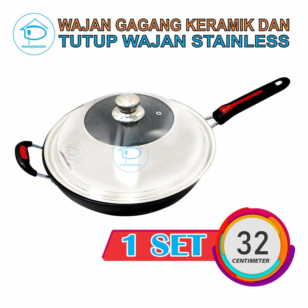 Name: Pamosroom Wajan Keramik Gagang 1 Set + Tutup 32cm Kuali Anti Lengket Bisa Kompor Induksi