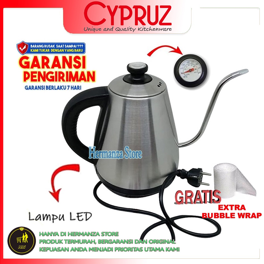 Sale Elekt di Kota Malang Cypruz Cyprus Kettle Teko Listrik 1 Liter Leher Angsa + Thermometer Tl-0201 dari Tidak Ada Merek Kota Tangerang