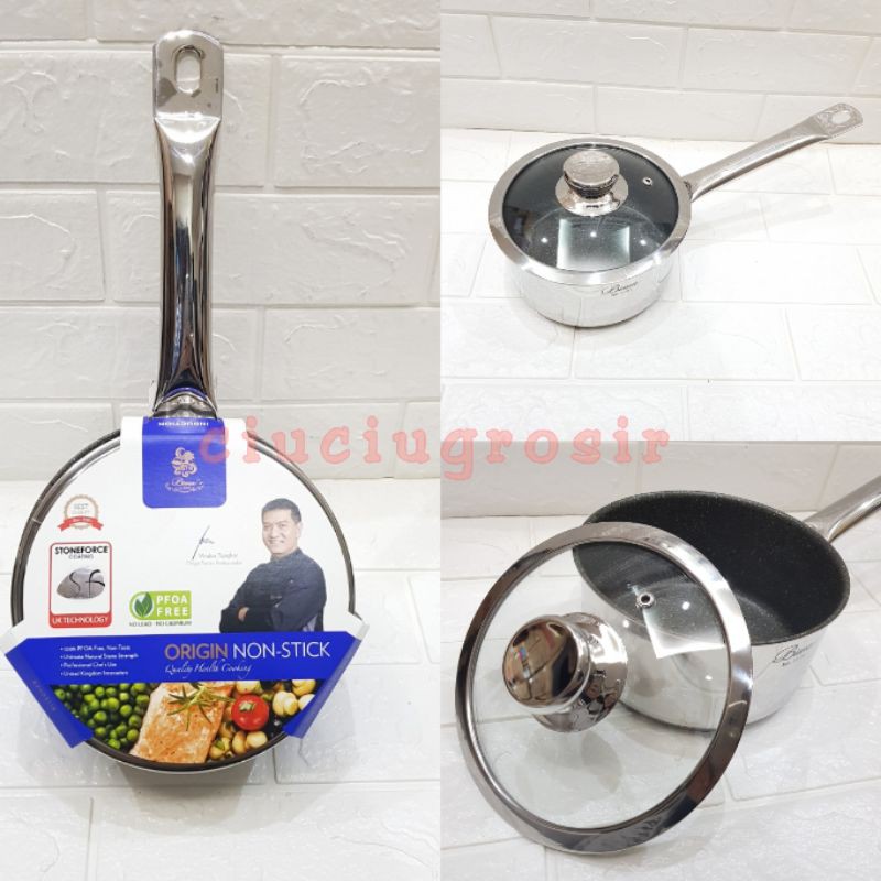 Best Seller Perlengkapan di Kabupaten Magelang Bima Origin Nonstick Stoneforce Coating Saucepan 16cm Panci Bima 1.6lt Glass Lid B2003116 dari Bima Kota Jakarta Utara