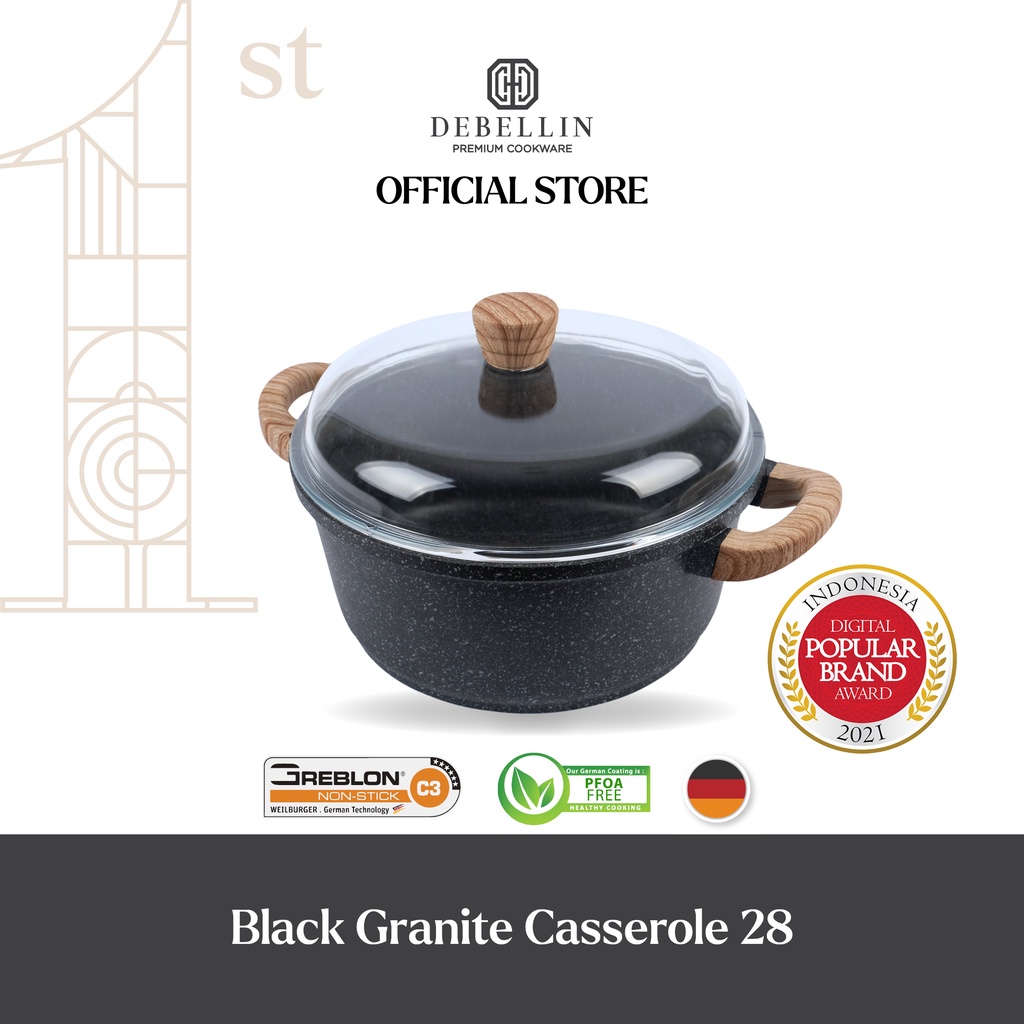 Name: Debellin Casserole 28 Cm - Black Granite Cookware Series Atau Panci Anti Lengket Premium