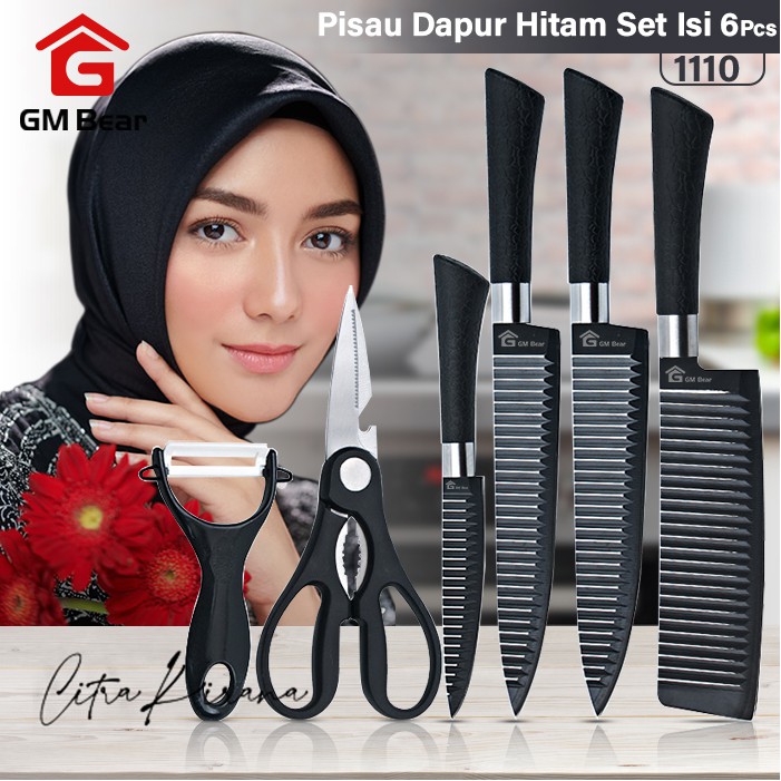 Jual Murah Perlengkapan di Kabupaten Bantul Gm Bear Pisau Dapur Hitam Set 6pcs 1110 - Kitchen Knife Black dari GM Bear Kota Jakarta Utara