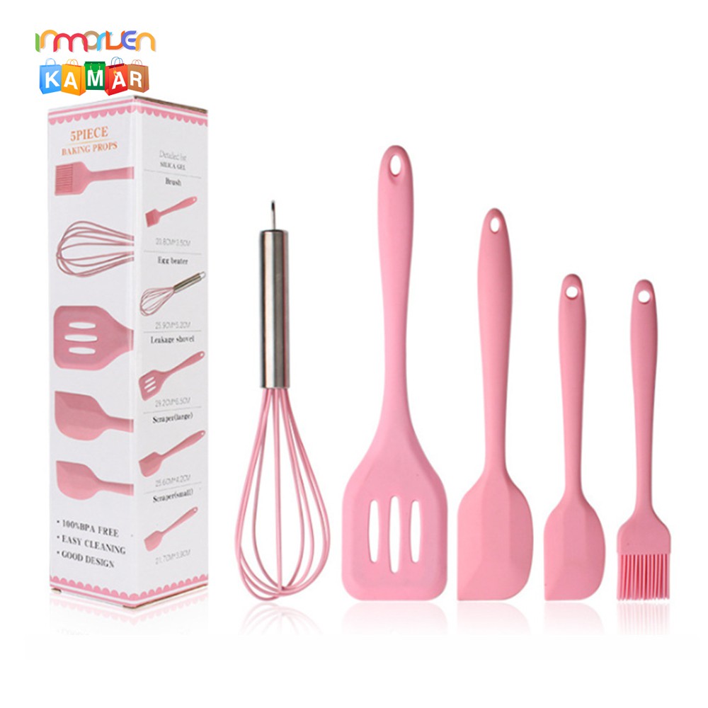 Hanya PinkWarna: Berwarna Merah MudaFitur: Terbuat dari silikon organik berkualitas tinggi, dengan sertifikasi FDA. Aman dan Sehat, Tidak berbau aneh, Tidak ada kerusakan pada pot, Tidak retak, Mudah dibersihkan, Indah dan Tahan Lama.Ketahanan panas berkisar dari -40 hingga 230.Ideal untuk memanggang dan memasak setiap hari.Spesifikasi:Bahan: Food grade FDA silikon + inti nilon yang diperkuatUkuran: seperti yang ditunjukkanWarna: merah mudaPaket termasuk: 1 * peralatan dapur (5 buah)Bahan: Silikon + BajaProduk-produknya meliputi:Scraper kecil: 20,5 * 5,4 cmScraper besar: 27 CM * 5.4 CMKuas: 21CM * 3.5CMKocok: 25 cmSpatula: 27 cm * 3,3 cmPacking: Tas PP + kotak warnaBerat dengan kotak: