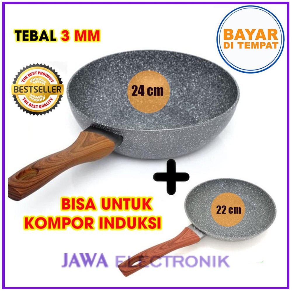 PAKET WAJAN MARBLE CYPRUZ MARBLE ANTI LENGKET DAN SEHATisi paket terdiri dari:1pcs Cypruz FRY PAN 22CM FP-06311pcs Cypruz Wok Fry Pan Induksi Wajan Penggorengan Marble 28 cm FP-041Lapisan marble aman tidak mengandung bahan PDOA yang biasa dipakai pada penggorengan anti lengket pada umumnya, dimana bila terkelupas dapat memicu radikal kanker pada tubuhCoating Marble - Tidak lengket dan lebih sehatKetebalan 3 mm (Lebih tebal dari umumnya)Bisa untuk kompor induksiHandle dari Kayu anti panas✅total 3 Lapis Marble✅PFOA FREE, CADMIUM LEAD, PFTE✅Anti Lengket✅Baby FriendlyMaterial paling Top, tidak ada yang lebih premium lagi dari segi material. Top Specs. Wajib Punya moms, bisa disimpan juga untuk cadangan ya. Ingat, kalo sudah masak pakai Cypruz, gak mungkin balik lagi ke Merk Lain ya, harus ada Cadangan ya. Premium dan masak lebih sehat ya moms, ayo masak sehat dengan Cypruz MarbleKelebihan:- Sangat TERJANGKAU! Panci kelas Eropa HARGA INDONESIA. kenapa harus beli panci merek lain kalau harga Cypruz Belgia sudah terjang