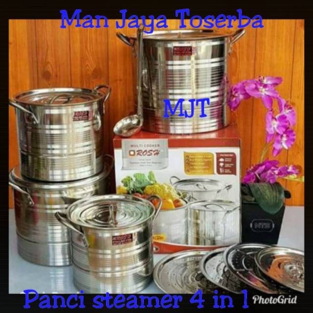 Rosh Multi Cooker 4GRATIS sendok sup ( soup ladle )Berat : 5 kgDimensi dus untuk perhitungan pengiriman : 32x32x32 = 5,46 kgPanci 1 Diameter 23 cm Tinggi 18 cm dengan steamerPanci 2Diameter 25 cm Tinggi 20 cm dengan steamerPanci 3Diameter 27 cm Tinggi 22 cmDengan steamerPanci 4Diameter 30 cm Tinggi 26 CmDengan steamerHigh quality Stainless steel NON MAGNETICHigenis dan anti karatSangat fungsional digunakan untuk kebutuhan sehari-hariPanci berbahan Tebal dan tahan lamaSangat Mudah untuk dicuci dan dibersihkanGagang Panci tebal dan berdurabilitas ti