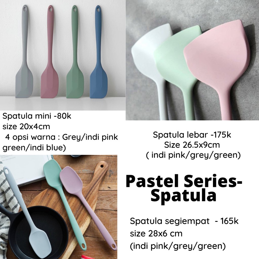 Produk silikon alat masak made in Korea Silikon premium KCL certified tahan hingga 250 derajat BPA FREE, microwave safe MADE IN KOREA 1. Spatula mini 20x4cm (blue/indi pink/grey/deep green)2. Spatula besar 29.8x5.3cm (blue/indi pink/grey/deep green)3. Spatula lebar 26.5x9cm (indi pink/grey/green)4. Spatula segiemat 28x6 (indi pink/grey/green)5. Sendok bundar masak multispoon 28x6 (indi pink/grey/deep green) 165k6. Sendok oseng besar 29x9.5x6cm (indi pink/grey/deep green/blue) 165size +- 2cm ya cara membersihkan alat masak/makan silicone - rebus di air mendidih - masukan ke microwave - bersihkan dengan air panas dan baking soda lebih