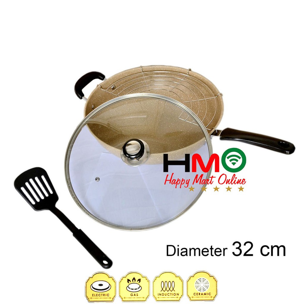 Name: Asta Panci Wajan Goreng Anti Lengket Marble Diameter 32 Cm Tutup Kaca Asta Cappucino Asps-08 Asps 08