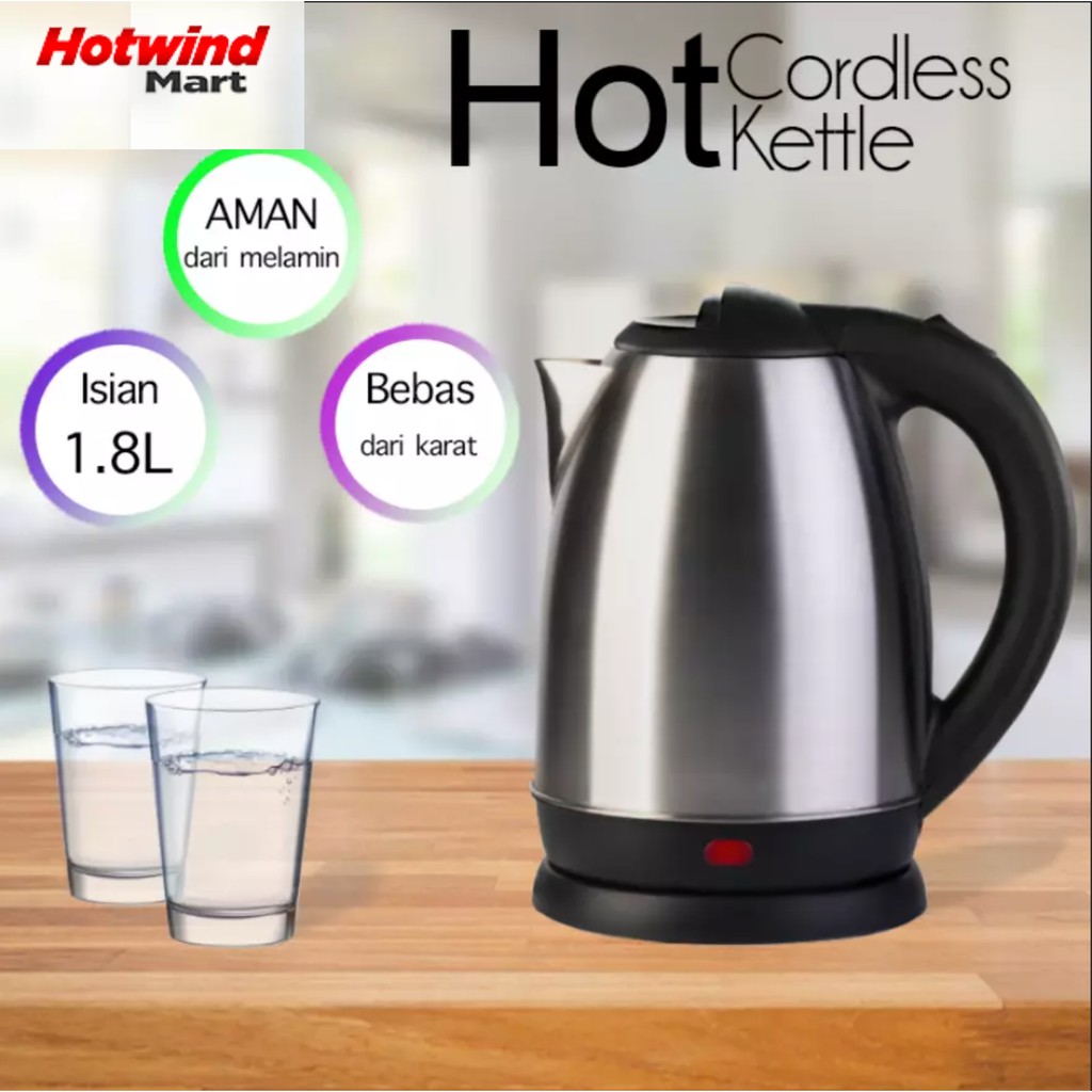 ✅ COD ✅ DROPSHIPER ✅ DAERAH JKT PENGIRIMAN 1-3HARI KERJAHotwind Cordless Kettle Series LIFECENTER 1.8LITER :Hemat Listrik, Aman DipakaiSaat badan sedang lelah, akan terpikir minuman panas. Masak air panas tetapi kurang semangat. Pakai dispenser tetapi boros listrik dan masak airnya lama dengan kapasitas rendah. Cukup dengan Hotwind Cordless Kettle Series Life center ataupun termos listrik pemanas air ini, anda bisa bebas dari semua masalah ini! Seri ini sudah dengan kapasitas besar 1.8 liter dan listriknya hanya 500watts, sehingga listrik anda bisa lebih hemat dan bisa buat air panas untuk sekeluarga sekaligusAman Untuk SemuanyaSudah tersedia dengan beberapa kelebihan seperti: Kapasitas besar dengan 1.8 liter, masak air untuk sekeluarga hitungan menit Lebih hemat daya, cukup dengan 500watts saja saat diperlukan dan lebih hemat di banding dengan dispenser yang hidup terusBoil-Dry Protection, sehingga saat airnya sudah menjadi kering, listriknya akan otomatis henti sehingga lebih ramah untuk sekeluarga dalam kondisi apapunLampu Indikator LED akan menyala saat airnya sedang dalam kondisi memanas dan lampu akan henti saat airnya sudah mendidih Henti otomatis saat airnya sudah siap disajiCara pemakaian:Isikan air secukupnya, minimal 0.3 liter ataupun maksimal 1.8 literPasangkan kettle / termos ini di atas dudukan listrik dan tekan tombol di pegangan tanganLampu indikator akan menyala dan siap disaji saat lampunya sudah padamTinggal angkat dan bisa dibawa ke mana-mana tanpa bawa kabel ataupun dudukannyaCara membersihkan:Cukup dengan kain setengah basah lalu membersihkan permukaan diluar termos. Dudukan listrik harus jauhi dari air.Jika dudukan listrik kena air secara tidak sengaja, mohon dikeringan sampai sudah benar kering baru dipakai kembali Kettle ini berfungsi untuk memanaskan air putih saja, bukan untuk air yang mengandung gula / minuman kaleng, supaya kettle kesayangan anda bisa tahan lebih lamaJika tidak diperlukan, cukup hanya simpan di manapun yang bebas banjir dan pakai kembali lagi saat diperlukanIsi di dalam kotak: 1x Hotwind Cordless Kettle LIFE CENTER1x Dudukan listrikFitur Umum:Kapasitas: 1.8literModel: Hotwind LIFECENTERSpesifikasi- Berbahan 201 SS (Stainless Steel)- Dapat diputar 360 derajat- Fitur Power off secara otomatis.- Fitur perlindungan kelebihan panas (overheat) dengan lampu indikator- Pegangan plastik berbahan PP.- FADA Controller- Ketebalan badan ceret : 0.4 mm- Kapasitas : 1.8 liter- Kabel : 0.75 mm2 0.75m(dengan VDE two round plug)- Plat Pemanas berbahan 201 SS (Stainless Steel) dan Aluminium- Fitur anti kekeringan dan perlindungan kelebihan panas- Tegangan : 220 - 240 V- Power : 500 watt- Frekeunsi : 50/60 Hz #kettle #termos #kettlelistrik #tekolistrik #pemanasair #teko #masakair #ketel #ketellistrik #listri