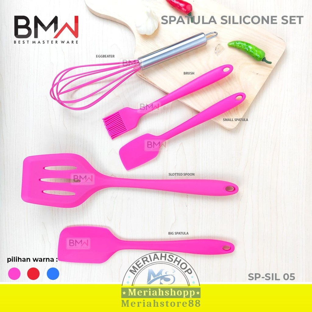 Merk BMW1 Set isi 5 pcs:● 1 x ScraperR Kecil: 21.2 x 4.2 cm● 1 x ScraperR Besar: 28 x 5.4 cm● 1 x Pengocok: 25.3 x 6.3 cm● 1 x Spatula: 29.4 x 6.8 cm● 1 x Kuas: 20 x 3.3 cm● Warna ready: BIRU ; PINK ; MERAH● Ada packing box warna● Bahan: Food-Grade Silicone● Aman dan tidak beracun● Tahan panas, cocok untuk wajan atau panci teflon● Berat Barang: 390 gr● Asal Barang: IMPORT➖➖➖➖➖➖➖➖➖➖➖➖➖➖➖➖Isi Kemasan:● 1 x Set Alat Masak (isi 5 pcs dengan varian yang ber