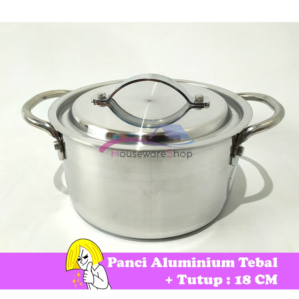 Panci Aluminium Model Kaserol Tebal : Diameter 18 CM, Tinggi 11 CMSudah dilengkapi dengan tutup aluminium, dikemas dan dikirim dengan k