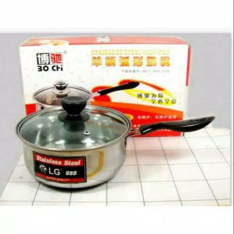 Panci Susu Stainless / Milk Pot / Panci Mie 555 20CmDeskripsi :Diameter : 17.5 cmTinggi : +/- 7.5 cmBahan : Stainless Steel (Panci), Kaca (Tutup panci) Plastik Tahan Panas (Gagang dan Kenop tutup panci)Buatan ChinaPanci Susu stainless dilengkapi dengan Tutup Kaca dan Lubang udara, sehingga memudahkan untuk mem