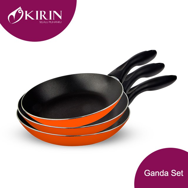 KIRIN Ganda Set 3 in 1 adalah produk yang terdiri dari 3 pcs barang yaitu Frypan 20 cm, Frypan 22 cm, dan Frypan 24 cm yang terbuat dari bahan aluminium 3003 dengan lapisan Non-stick PFOA FreePegangan terbuat dari bakelite, dengan desain ergonomis sehingga nyaman untuk digunaka