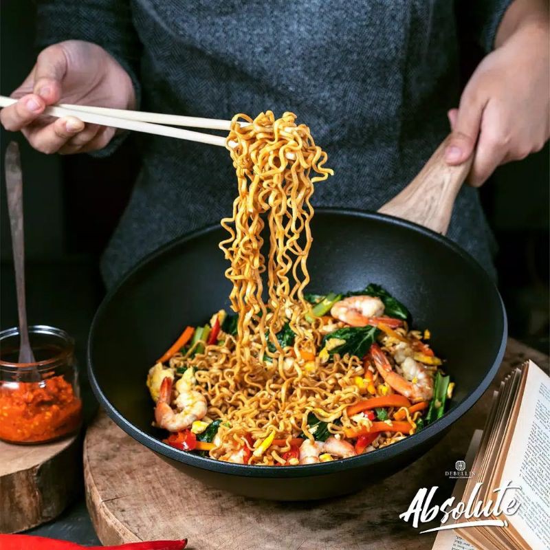 Absolute Granite series berwarna dasar hitam adalah seri inovatif terbaru yang di-design sebagai sebuah ‘upgrade’ atas granite series yang sudah ada.Seluruh produk alat masak Debellin Premium Cookware termasuk Absolute Granite series sudahlulus uji bebas dari semua bahan yang beracun dan berpotensi menyebabkan kanker. Bebas dari PFOA, Lead, Cadmium.Debellin Absolute Granite Asian Wok 28cm sangat pas untuk memasak porsi 2-3 orang, cocok untuk menumis, menggoreng, hingga deep fry.Sangat ringan sehingga dapat menumis ala Chef dengan 1 tangan. Tutup kaca yang di-desain untuk menjaga rasa makanan dan memastikan masak apapun jadi lebih cepat dari biasanya. Desain wok dengan cekungan yang dalam membuat menumis menjadi sangat mudahFitur:-Bahan dasar Die Cast Alumunium-Menggunakan Teknologi Greblon : granit coating / lapisan granit-Anti Lengket 5x lebih baik dari sebelumnya-Mampu menyimpan panas lebih lama-Tekstur permukaan yang khas sehingga lebih anti lengket dan mudah dibersihkan-Tidak meninggalkan bau-Dasar Panci dilapisi dengan plat induksi sehingga cocok untuk semua permukaan kompor-Desain eksklusifSpesifikasi Asian Wok 28 Cm -Tinggi: 8,5 cm Kapasitas: 3,5 literBerat Panci: 950 gr Berat + Tutup : 1.700 grSpesifikasi Asian Wok 32 Cm -Tinggi: 9,5 cm Kapasitas: 5,4 literBerat Panci: 1.200 gr Berat + Tutup : 2.500 grSaran Perawatan:1. Pada penggunaan pertama kali, disarankan masak air hingga mendidih lalu buang airnya, kemudian lumuri minyak dan diamkan 30 menit, setelahnya cuci menggunakan sponge halus dan bilas hingga bersih, lalu siap digunakan2. Penggunaan api sedang atau kecil untuk memasak3. Jangan panaskan alat masak tanpa makanan dalam waktu lama4. Jika tidak sengaja memasak hingga gosong, berikan sedikit air dan didihkan dengan api sedang untuk mempermudah proses pembersihan5. Biarkan kembali ke suhu ruangan terlebih dahulu sebelum mencuci6. Cuci menggunakan busa lembut7. Disarankan menggunakan sutil/spatula Silikon/Kayu/Pl