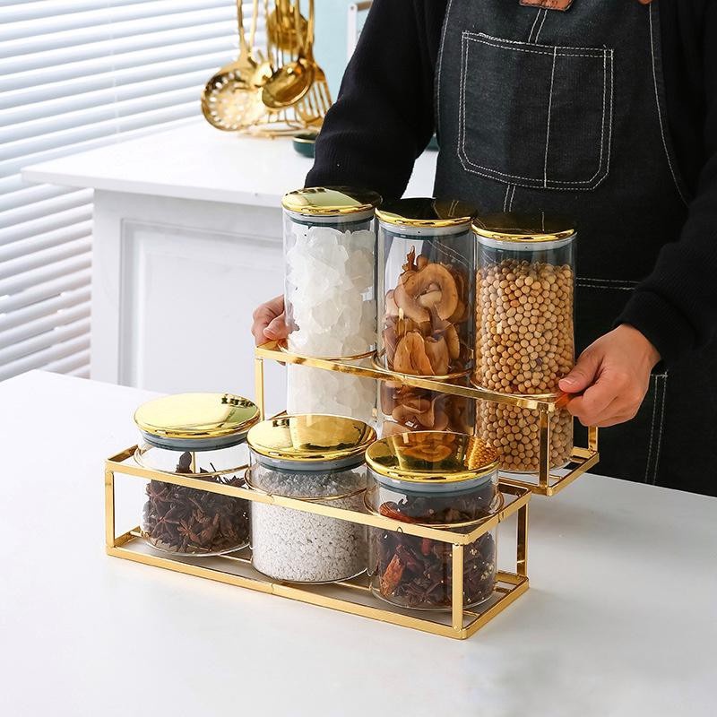 Termurah Perlengkapan di Kabupaten Demak Set Triple Gold Jar Rack / Set Tempat Toples Snack Dengan Rak / Mewah Alat Dapur Pajangan Rumah dari Littlecasa Kota Jakarta Utara