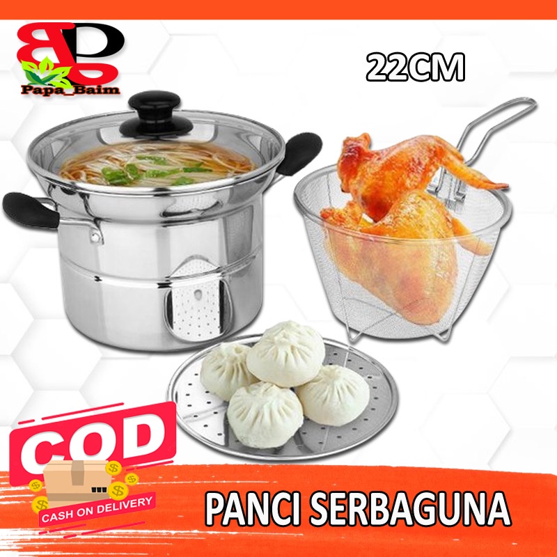 Toko Grosir Perlengkapan di Kota Kediri Panci Serbaguna Cooking Pot 3 In 1 22 Cm / Deep Frying / Noodle Pot / Panci Multifungsi Panci Mie dari Papa_baim Kota Bekasi