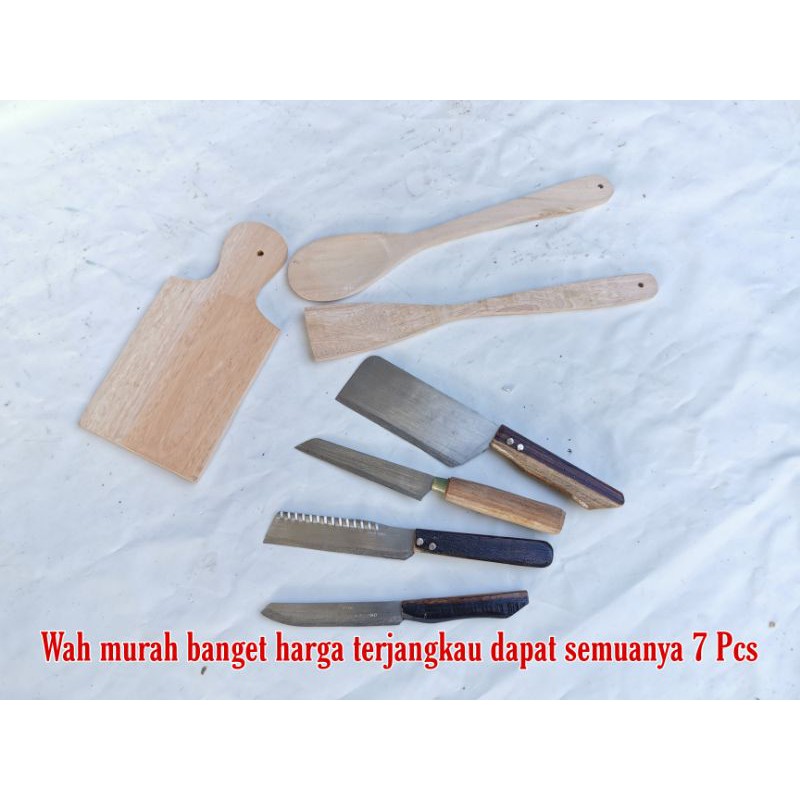 Paket murah banget dengan harga terjangkau kamu bisa bawa pulang perlengkapan dapur 7 pcsPisau ini tajam di produksi oleh umkm jawa tengah dari pengrajin nya
