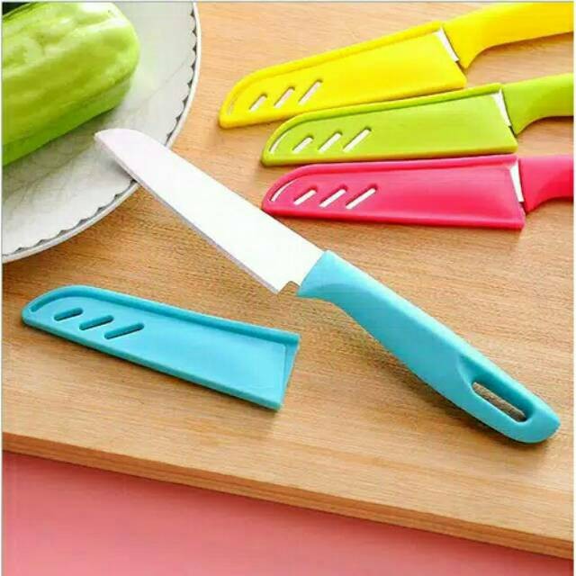 Pisau Dapur Kecil Tajam Warna Biru Multifungsi Ada Sarung Penutup Pisau pengupas buah atau bisa untuk mengiris macam-macam makanan, terbuat dari bahan stainlles steel dan gagang plastik,pisau tajam dilengkapi dengan sarung yang berwarna-warni.Stok Rea