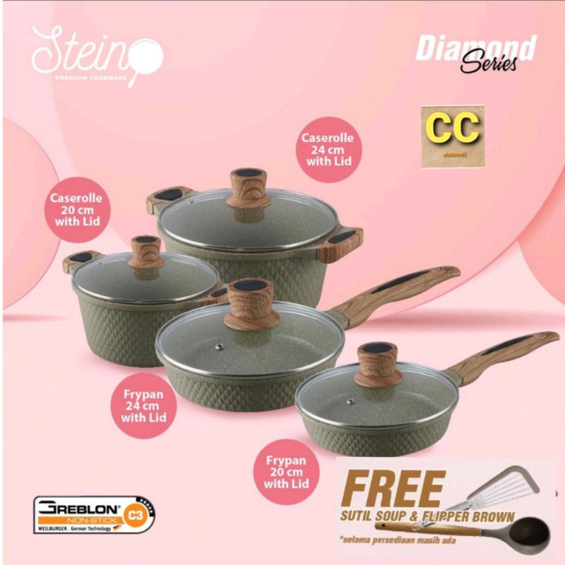 Toko Grosir Perlengkapan di Kabupaten Bangkalan Paket Hemat Diamond Steincookware Stein Cook Ware Panci Wajan Diamond Caserolle dari Cc Elektronik Distributor Kota Surabaya
